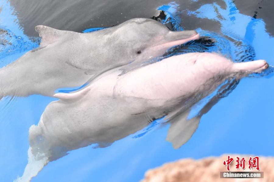 Zhuhai,29/04/2019(El Pueblo en Línea)-Delfines blancos chinos actuan durante un evento en el Reino del Océano Chimelong en Zhuhai, provincia de Guangdong, el 27 de abril del 2019. Aclamado como las "sirenas" o “pandas gigantes del mar,", los delfines blancos chinos a menudo se avistan en el Mar Oriental de China. Estas criaturas están bajo la protección estatal de primera clase. El evento forma parte de una campa?a anual de conservación destinada a concienciar sobre el cuidado que hay que brindarle a este especie, que se encuentra en peligro de extinción. (Foto: SNC)