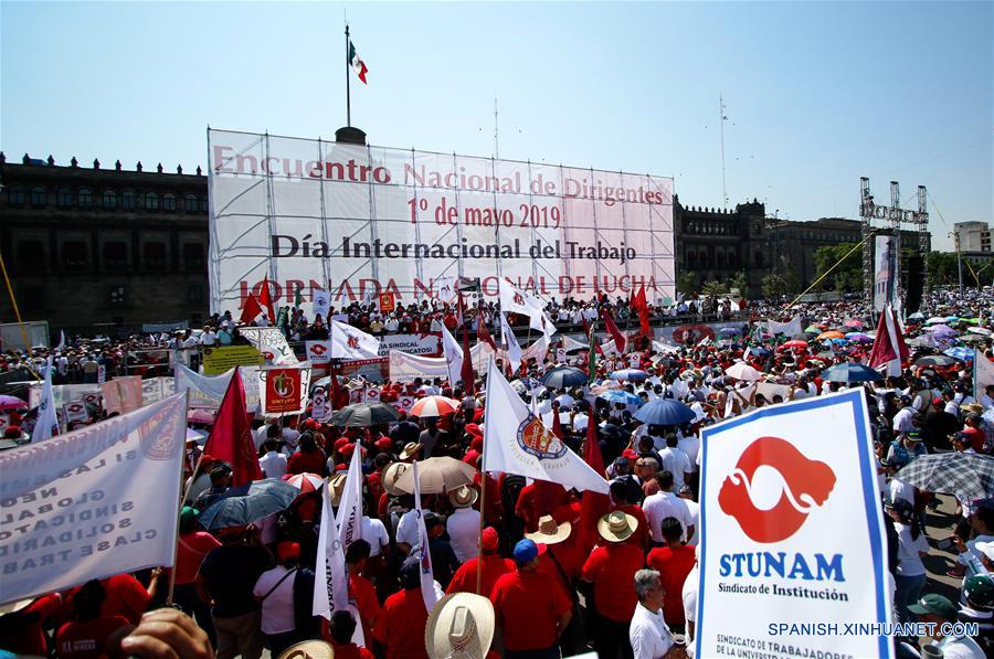 CIUDAD DE MEXICO, 1 mayo, 2019 (Xinhua) -- Personas participan durante una marcha en conmemoración del Día del Trabajo, en la Ciudad de México, capital de México, el 1 de mayo de 2019. (Xinhua/Francisco Ca?edo)