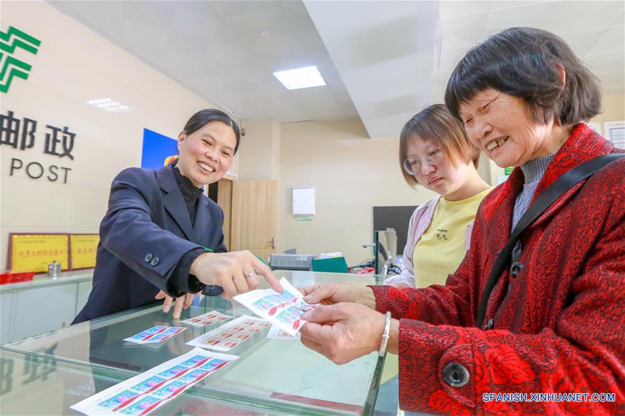 JIANGXI, 4 mayo, 2019 (Xinhua) -- Personas compran estampillas conmemorativas del 100 aniversario del Movimiento Cuatro de Mayo, en la oficina de Ji'an de China Post, en la ciudad de Ji'an, en la provincia de Jiangxi, en el este de China, el 4 de mayo de 2019. China Post emitió el sábado un juego de dos estampillas conmemorativas para conmemorar el centenario del Movimiento Cuatro de Mayo. (Xinhua/Chen Fuping)