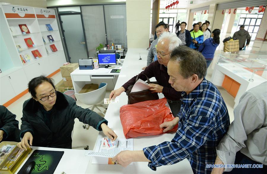 HEBEI, 4 mayo, 2019 (Xinhua) -- Personas compran estampillas conmemorativas del 100 aniversario del Movimiento Cuatro de Mayo, en la oficina de Handan de China Post, en la ciudad de Handan, en la provincia de Hebei, en el norte de China, el 4 de mayo de 2019. China Post emitió el sábado un juego de dos estampillas conmemorativas para conmemorar el centenario del Movimiento Cuatro de Mayo. (Xinhua/Hao Qunying)