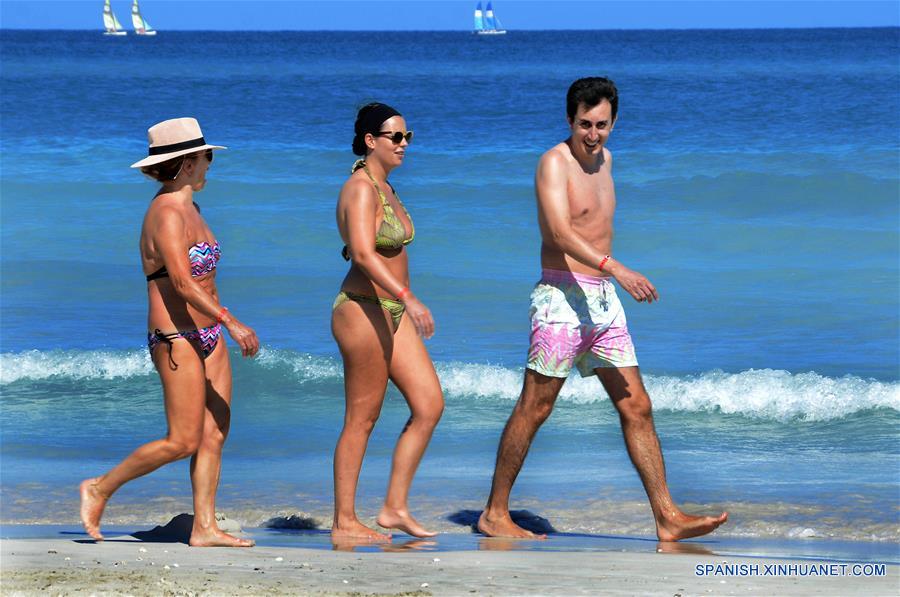 LA HABANA, 4 mayo, 2019 (Xinhua) -- Imagen del 9 de marzo de 2019, de turistas extranjeros caminando en una playa de Varadero, de la provincia Matanzas, en La Habana, capital de Cuba. Cuba cerró el primer cuatrimestre con un crecimiento de 7,2 por ciento en el arribo de turistas, cifra preliminar ligeramente superior a la planificada para alcanzar en 2019 los 5 millones 100.000 visitantes, informó el sábado el ministro de Turismo, Manuel Marrero. (Xinhua/Joaquín Hernández)