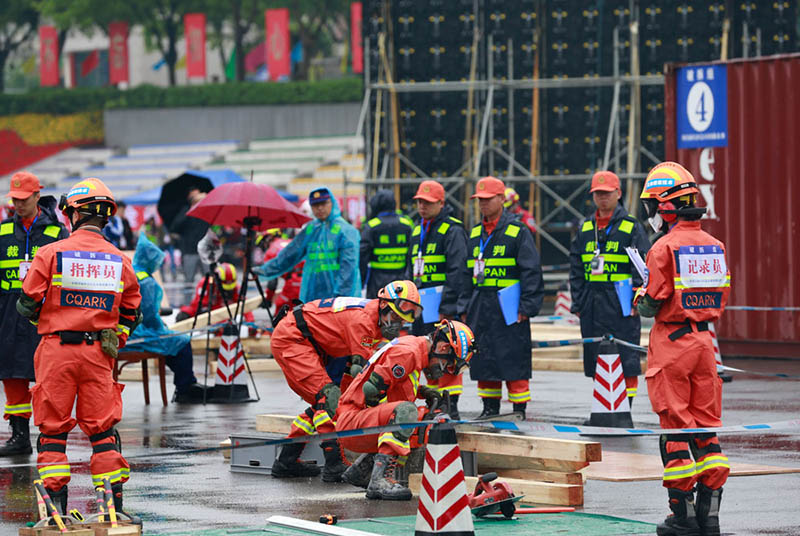 Para promover el desarrollo de la capacidad de respuesta de la defensa civil en casos de emergencias, del 7 al 10 de mayo se celebró en Chongqing la primera edición de la Competencia Nacional de Equipos de Rescatistas Voluntarios. De un total de 280 equipos, 27 de ellos llegaron a ser finalistas. [Foto: proporcionada a China Daily]