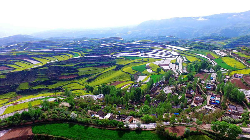 Parque de la monta?a Quiqing en Zhangxian, provincia de Gansu, lleno de colza florecida. [Foto: Wang Jinsheng]