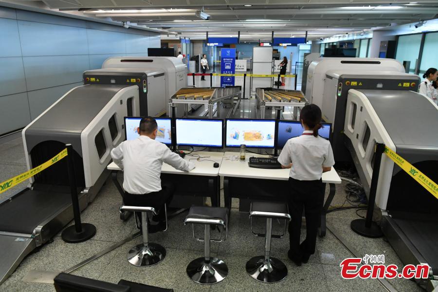 Un aduanero revisa el equipaje de un pasajero utilizando un escáner. La aduana de Kunming exhibe productos incautados vinculados a especies en peligro de extinción y la vida silvestre en el Aeropuerto Internacional de Changshui, Kunming, provincia de Yunnan, 8 de mayo del 2019. (Foto: servicio de noticias de China/ Ren Dong)