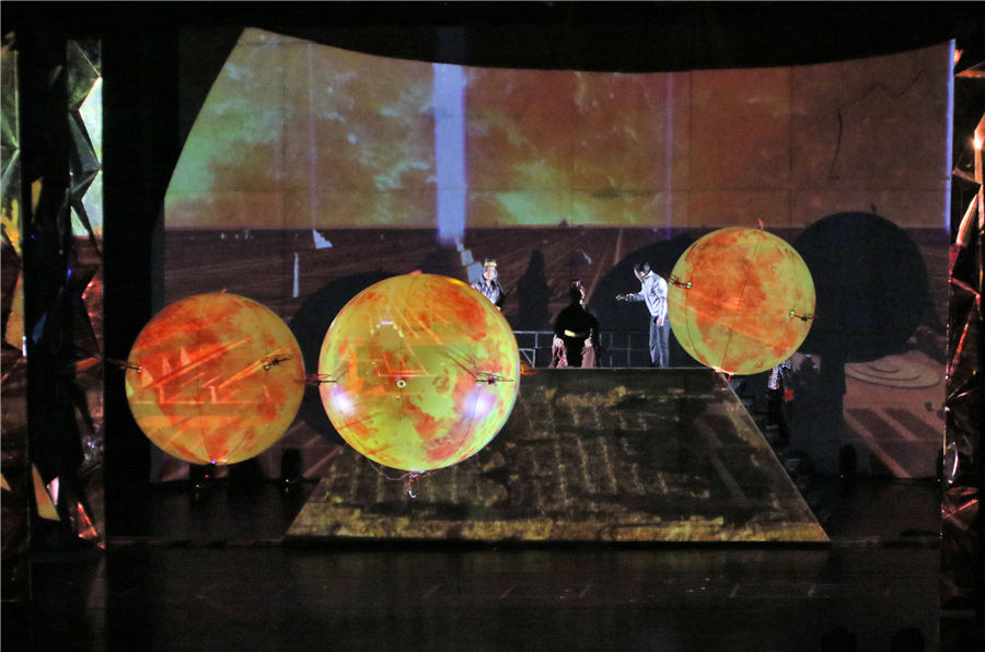 Una compa?ía de teatro ofrece una adaptación de la novela “El problema de los tres cuerpos” de Liu Cixin, en Yantai, provincia de Shandong, 2017. [Foto: Tang Ke/ China Daily]