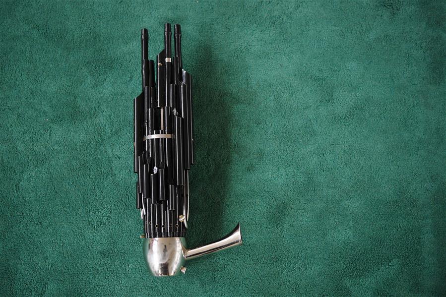 LANZHOU, 15 mayo, 2019 (Xinhua) -- Imagen del 13 de mayo de 2019, de un sheng exhibido en la orquesta tradicional de Lanzhou, en Lanzhou, en la provincia de Gansu, en el noroeste de China. El sheng, un instrumento de viento de tubo de ca?a, es uno de los instrumentos musicales tradicionales chinos. Es un instrumento polifónico y disfruta de una creciente popularidad como un instrumento en solitario. En las grandes orquestas chinas de la actualidad, se usa tanto para melodía como para acompa?amiento. (Xinhua/Chen Bin)