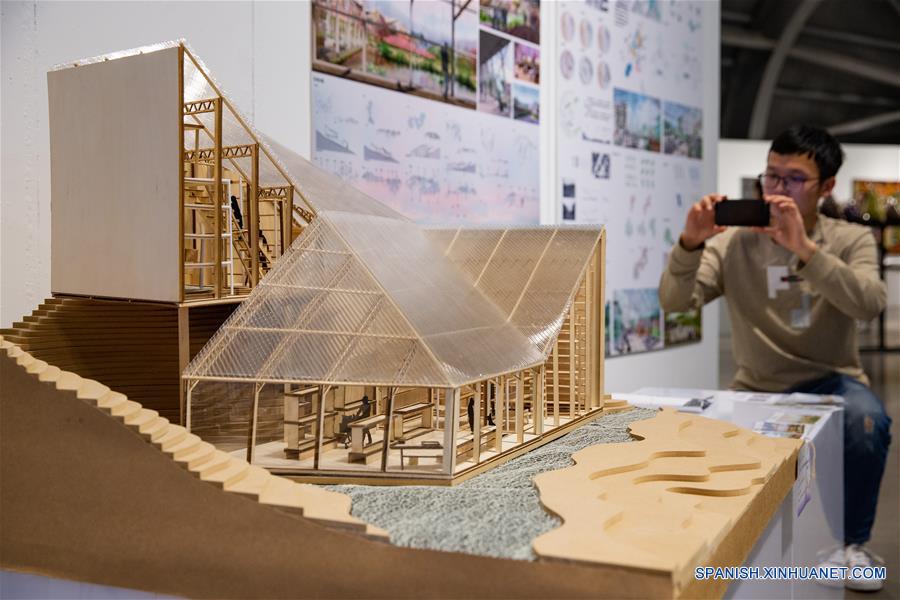 JIANGSU, 20 mayo, 2019 (Xinhua) -- Un hombre toma fotografías de las obras de los graduados en la Universidad de las Artes de Nanjing, en Nanjing, capital de la provincia de Jiangsu, en el este de China, el 20 de mayo de 2019. El Carnaval en la Universidad de las Artes de Nanjing, comenzó el lunes con diferentes tipos de obras de graduados de 2019 exhibidas. (Xinhua/Su Yang)