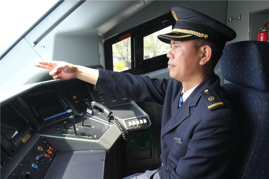 Losong Tsering conduce un tren de alta velocidad. [Foto: proporcionada]