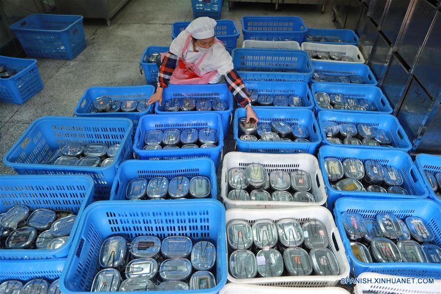 GUIZHOU, 21 mayo, 2019 (Xinhua) -- Una trabajadora prepara el almuerzo para estudiantes en la Escuela Primaria Número 11 de la ciudad de Tongren, en la provincia de Guizhou, en el suroeste de China, el 21 de mayo de 2019. La ciudad de Tongren ha establecido un sistema de monitoreo aplicando nuevas tecnologías de base de datos para rastrear la comida de la agricultura a la mesa del comedor, un esfuerzo para garantizar la seguridad alimentaria de los estudiantes. (Xinhua/Ou Dongqu)