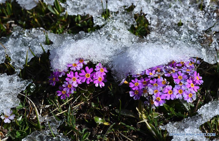 QINGHAI, 22 mayo, 2019 (Xinhua) -- Imagen del 21 de mayo de 2019 de una vista del deshielo en el Complejo Turístico Escénico de la Monta?a Nianbaoyuze, en el distrito de Jiuzhi de la prefectura autónoma tibetana de Golog, provincia de Qinghai, en el noroeste de China. (Xinhua/Zhang Hongxiang)