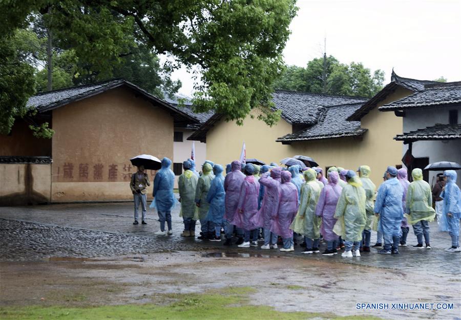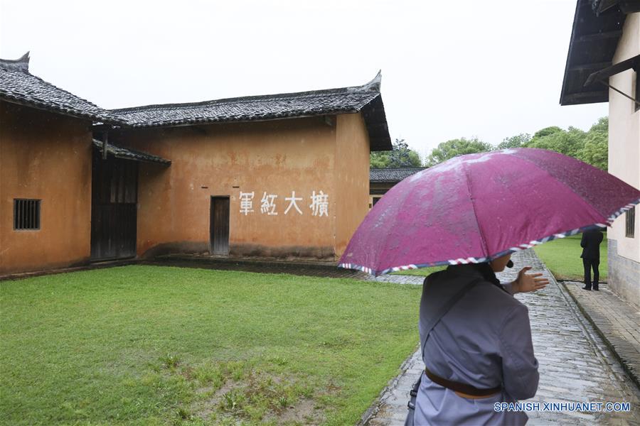 JIANGXI, 23 mayo, 2019 (Xinhua) -- Imagen del 6 de mayo de 2019 de una empleada guiando a los turistas en un punto escénico turístico rojo, en el municipio de Yeping de la ciudad de Ruijin, provincia de Jiangxi, en el este de China. Ruijin es reconocida como "la capital roja" y una cuna de la revolución china porque el precursor de la República Popular China, el Gobierno Central Provisional de la República Soviética de China, fue fundado allí en 1931. En julio de 2018, Ruijin anunció que había expulsado con éxito la pobreza. (Xinhua/Lan Hongguang)
