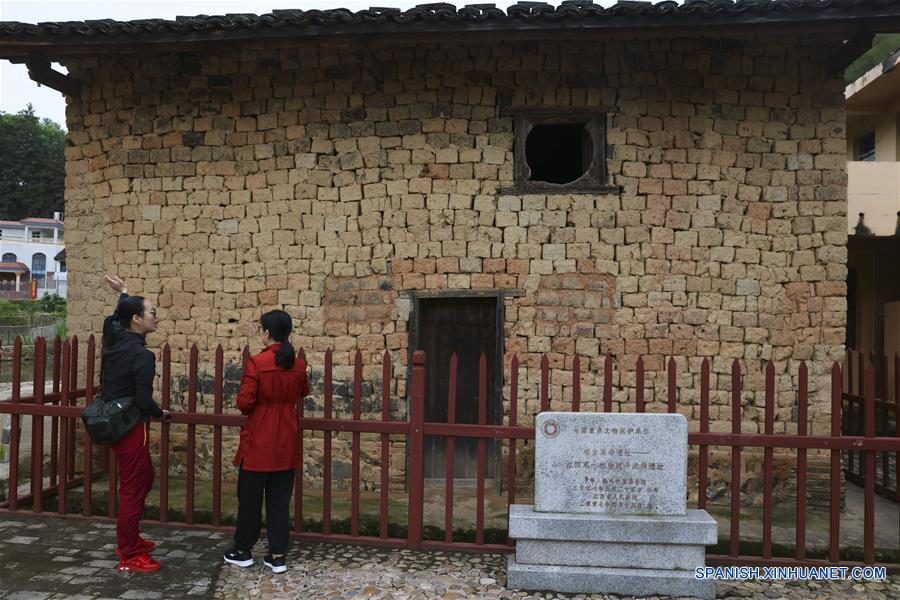 JIANGXI, 23 mayo, 2019 (Xinhua) -- Imagen del 7 de mayo de 2019 de una funcionaria local (d) realizando una explicación de un antiguo sitio de una batalla del Ejército Rojo a una turista, en el municipio de Dabaidi de la ciudad de Ruijin, provincia de Jiangxi, en el este de China. Ruijin es reconocida como "la capital roja" y una cuna de la revolución china porque el precursor de la República Popular China, el Gobierno Central Provisional de la República Soviética de China, fue fundado allí en 1931. En julio de 2018, Ruijin anunció que había expulsado con éxito la pobreza. (Xinhua/Lan Hongguang)