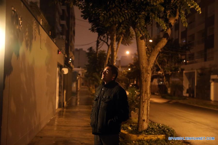 Una persona reacciona después de un sismo, en Lima, Perú, el 26 de mayo de 2019. Un fuerte sismo de magnitud 7,5 grados sacudió la madrugada del domingo el Perú, sintiéndose en Lima, confirmó el Instituto Geofísico del Perú (IGP), que hasta el momento no ha reportado víctimas ni da?os materiales. (Xinhua/Mariana Bazo)