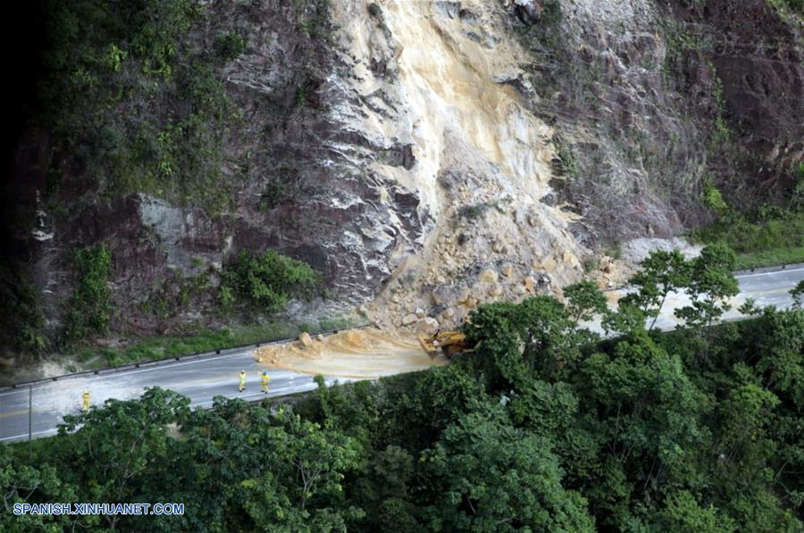 Imagen cedida por la Agencia Peruana de Noticias Andina, de una vista de un deslizamiento de tierra luego de un sismo, Yurimaguas, Perú, el 26 de mayo de 2019. Una persona muerta y otras 11 heridas en Perú fue el saldo preliminar que dejó el terremoto de magnitud 7,5 en la escala de Richter registrado la madrugada de este domingo en el norte del país andino, confirmó el coordinador del Centro de Operaciones de Emergencia Nacional (COEN), Ricardo Seijas. (Xinhua/ANDINA)