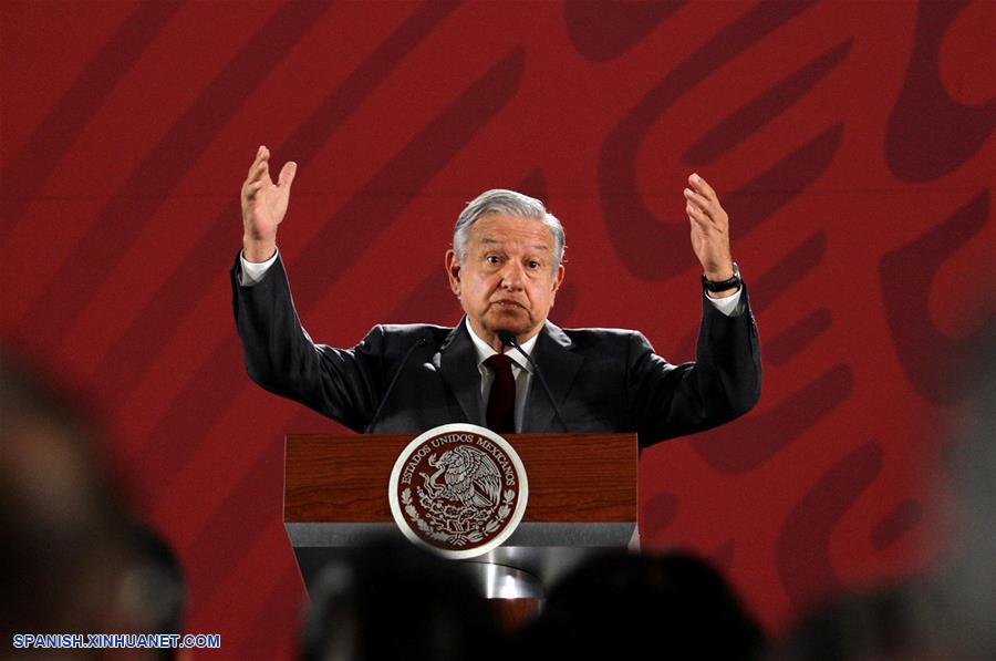 CIUDAD DE MEXICO, 27 mayo, 2019 (Xinhua) -- El presidente de México, Andrés Manuel López Obrador, participa en una conferencia de prensa matutina, en Palacio Nacional, en la Ciudad de México, capital de México, el 27 de mayo de 2019. México cuenta con finanzas sólidas por lo que no solicitará nuevos créditos ni apoyo financiero al Fondo Monetario Internacional (FMI), aseguró el lunes el presidente mexicano, Andrés Manuel López Obrador. (Xinhua/Str)
