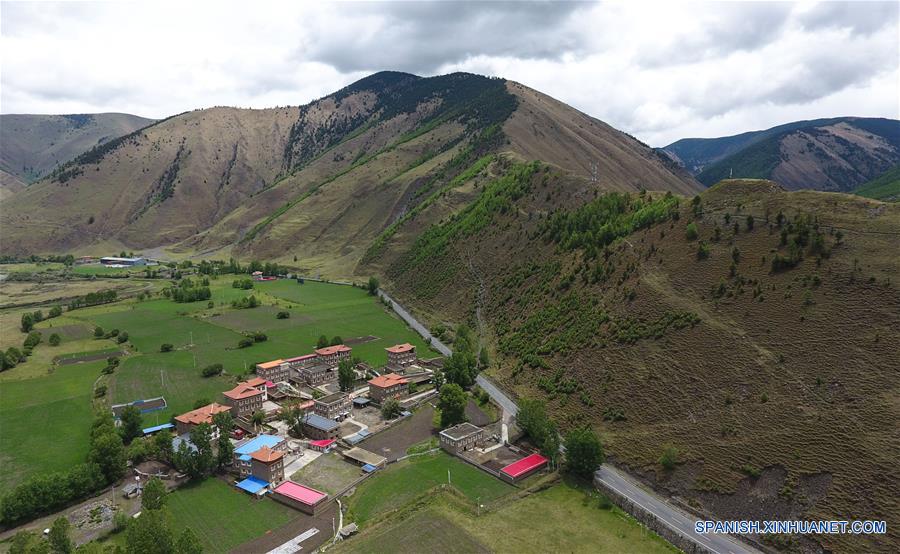 SICHUAN, 29 mayo, 2019 (Xinhua) -- Imagen del 24 de mayo de 2019 de una vista aérea de la villa de Tiesuo en la ciudad de Kangding, en la prefectura autónoma tibetana de Ganzi, provincia de Sichuan, en el suroeste de China. La ciudad de Kangding implementa la estrategia de revitalización rural mediante la mejora del desarrollo del turismo en las zonas rurales. (Xinhua/Xue Yubin)
