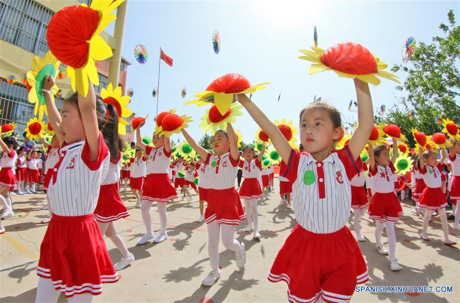 HEBEI, 29 mayo, 2019 (Xinhua) -- Estudiantes interpretan un baile en celebración del próximo Día Internacional del Ni?o en una escuela del distrito de Xinhua en la ciudad de Shijiazhuang, provincia de Hebei, en el norte de China, el 29 de mayo de 2019. (Xinhua/Liang Zidong)