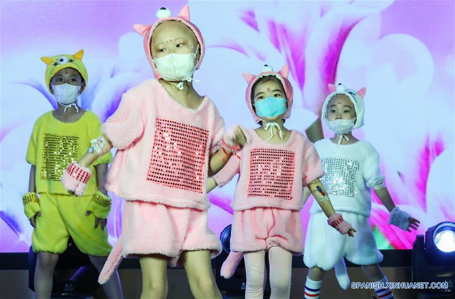 BEIJING, 30 mayo, 2019 (Xinhua) -- Imagen del 29 de mayo de 2019 de peque?os pacientes con enfermedad de la sangre actuando en el escenario en el Hospital Infantil de Beijing, en Beijing, capital de China. Una serie de actividades se llevaron a cabo en el Hospital Infantil de Beijing para conmemorar el próximo Día del Ni?o y crear conciencia acerca de los ni?os con enfermedades de la sangre. (Xinhua/Zhang Yuwei)