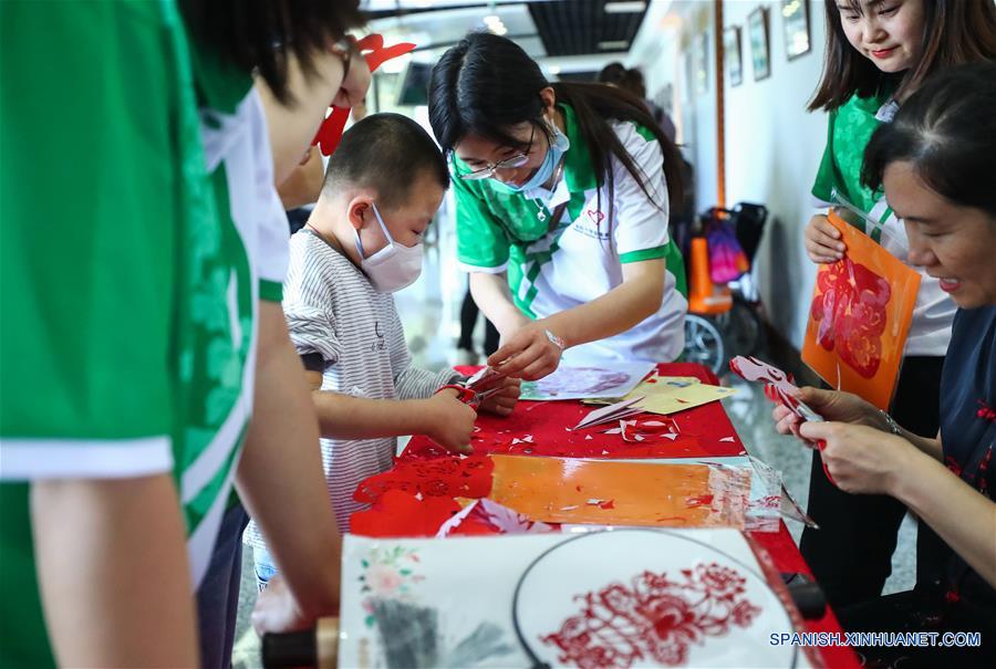 BEIJING, 30 mayo, 2019 (Xinhua) -- Imagen del 29 de mayo de 2019 de peque?os pacientes con enfermedad de la sangre jugando a cortar papel en el Hospital Infantil de Beijing, en Beijing, capital de China. Una serie de actividades se llevaron a cabo en el Hospital Infantil de Beijing para conmemorar el próximo Día del Ni?o y crear conciencia acerca de los ni?os con enfermedades de la sangre. (Xinhua/Zhang Yuwei)