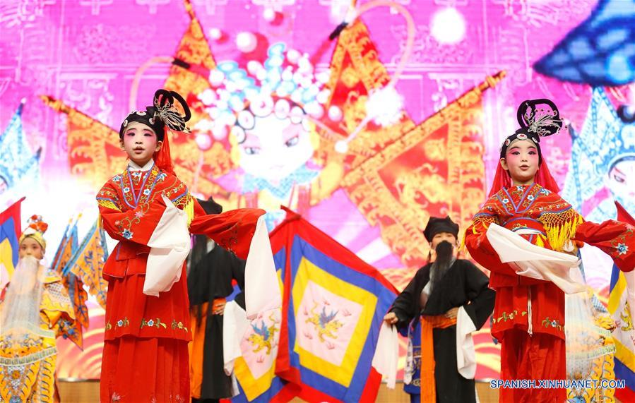 SHANDONG, 30 mayo, 2019 (Xinhua) -- Estudiantes interpretan la Opera de Pekín durante un festival del campus de la Opera de Pekín en la Escuela Experimental Tongji, en Qingdao, provincia de Shandong, en el este de China, el 30 de mayo de 2019. La Escuela Experimental Tongji integra la Opera de Pekín dentro de sus cursos desde septiembre de 2018, con el objetivo de heredar la cultura tradicional china. (Xinhua/Liang Xiaopeng)
