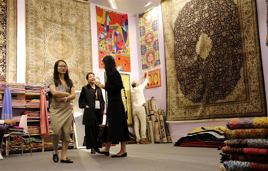 Imagen del 31 de mayo de 2019 de personas visitando un puesto de frazadas, en Shanghai, en el este de China. La Exposición de Marcas de la Franja y La Ruta 2019 comenzó el viernes en el Centro de Exposiciones de Shanghai. (Xinhua/Fang Zhe)