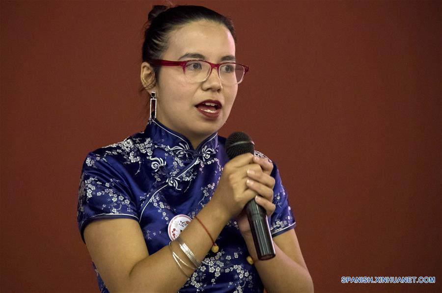 QUITO, 2 junio, 2019 (Xinhua) -- Karem Tay, estudiante de la Academia de Lengua China Siyuan del Instituto Confucio, compite durante el XVIII Concurso Mundial Universitario "Puente Chino 2019", en el Instituto Confucio de la USFQ, en Quito, Ecuador, el 2 de junio de 2019. El XVIII Concurso Mundial Universitario "Puente Chino 2019" se realizó el domingo en Quito, donde nueve estudiantes demostraron el dominio del idioma chino y sus conocimientos sobre la cultura e historia del país asiático. (Xinhua/Santiago Armas)