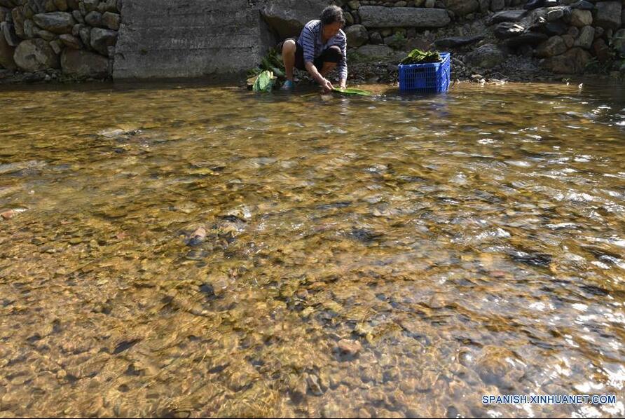 GUIZHOU, 4 junio, 2019 (Xinhua) -- Una residente limpia hojas para elaborar Zongzi, un plato en forma de pirámide elaborado con arroz glutinoso enrollado con hojas de bambú o de ca?a, en la villa de Yangxi del municipio de Maoping, distrito de Jinping, en la prefectura autónoma de las etnias miao y dong de Qiandongnan, provincia de Guizhou, en el suroeste de China, el 4 de junio de 2019. Diversas actividades se llevan a cabo en todo el país para celebrar el próximo Festival del Bote del Dragón, que cae el 7 de junio este a?o. (Xinhua/Yang Xiaohai)