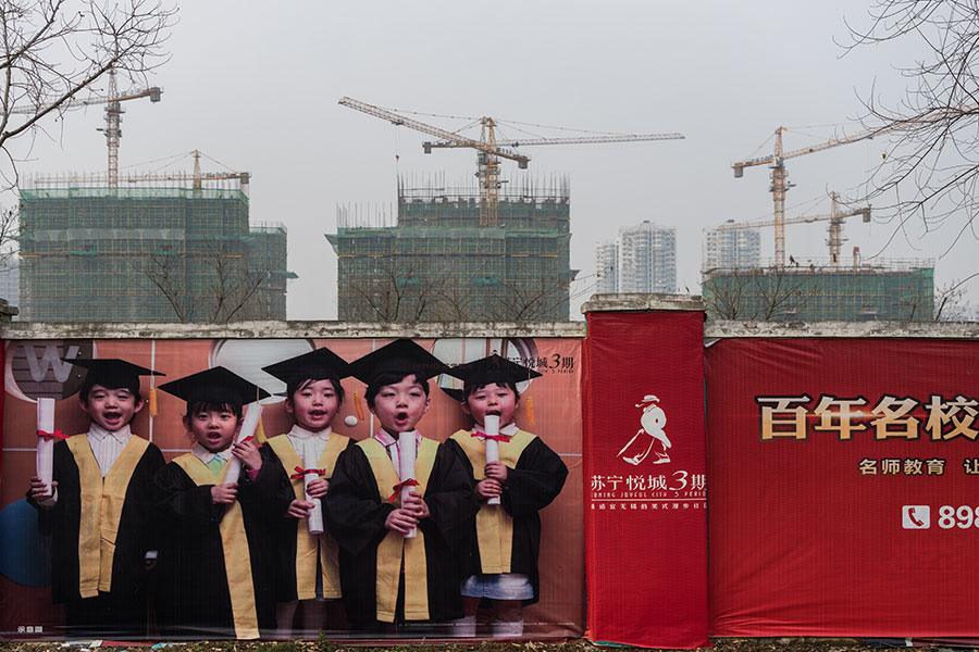 Anuncio de un proyecto de vivienda en Wuxi, provincia de Jiangsu, que destaca su proximidad a una famosa escuela. Los padres chinos prefieren adquirir casas que estén cerca de las escuelas, ya sea en China o en el extranjero. [Foto: Proporcionada a China Daily]