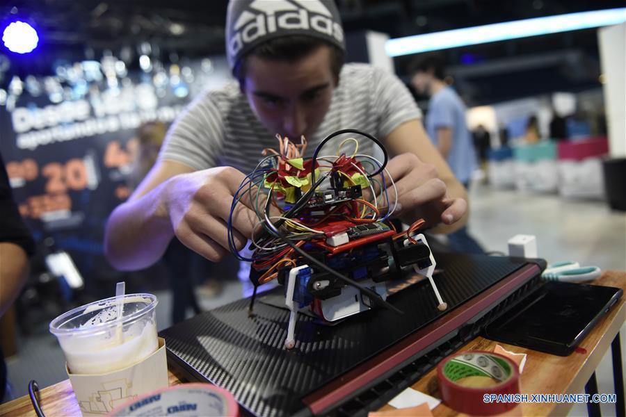 MONTEVIDEO, 10 junio, 2019 (Xinhua) -- Un joven manipula un robot durante la primera edición de la Expo Innovación, en el recinto Antel Arena, en Montevideo, capital de Uruguay, el 10 de junio de 2019. De acuerdo con información de la prensa local, Expo Innovación, que se lleva a cabo del 8 al 16 de junio, es un espacio para toda la familia que tiene como objetivo que el público pueda conocer y experimentar los proyectos más innovadores que se están desarrollando en Uruguay en diversos ámbitos como salud, tecnología, transporte, educación, robótica, movilidad eléctrica, entre otros, por medio de diferentes espacios orientados a grandes y chicos. (Xinhua/Nicolás Celaya)