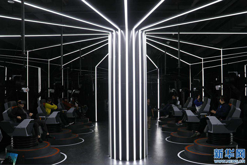 Los visitantes experimenta la película de realidad virtual en Nanchang, 21 de octubre del 2018. [Foto: WANG Kaifeng / Xinhua]
