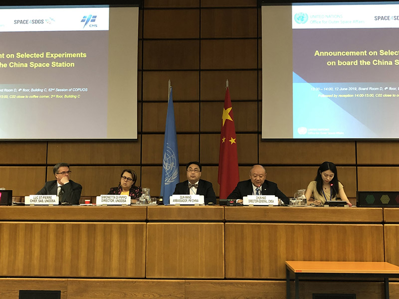 La Agencia Espacial Tripulada de China y la Oficina de Asuntos del Espacio Ultraterrestre de las Naciones Unidas firmaron un memorando de entendimiento en 2016. La iniciativa apunta a desarrollar las capacidades espaciales de los miembros de la ONU brindando oportunidades para volar a bordo de la Estación Espacial de China, que se espera orbitará la Tierra en 2022.