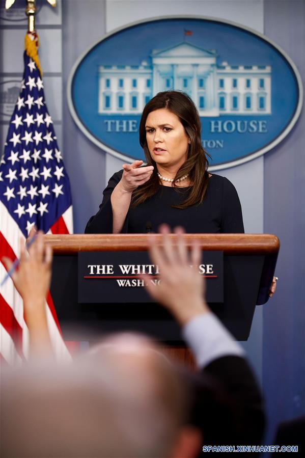 Imagen del 11 de marzo de 2019, de la secretaria de prensa de la Casa Blanca, Sarah Sanders, participando durante una conferencia de prensa en la Casa Blanca, en Washington D.C., Estados Unidos. La secretaria de prensa de la Casa Blanca, Sarah Sanders, dejará su cargo a fin de mes, anunció el jueves el presidente de Estados Unidos, Donald Trump. (Xinhua/Ting Shen)