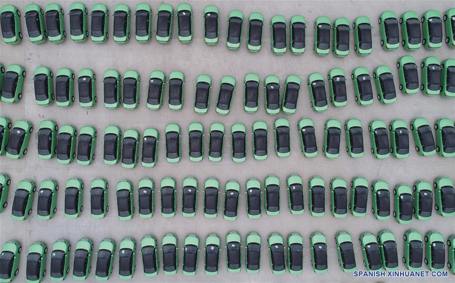 SHAANXI, 13 junio, 2019 (Xinhua) -- Imagen del 12 de junio de 2019 de una vista aérea de vehículos de nueva energía en la planta de Xi'an de BYD Auto, en Xi'an, provincia de Shaanxi, en el noroeste de China. Las ventas de vehículos de nueva energía (NEV, por sus siglas en inglés) continuaron creciendo el mes pasado, aumentando un 1,8 por ciento interanual, según la Asociación de Automóviles de Pasajeros de China. El gobierno anunció a principios de este mes medidas para incrementar las ventas de automóviles, como prohibir a los gobiernos locales imponer un límite al consumo y uso de los NEV. (Xinhua/Shao Rui)