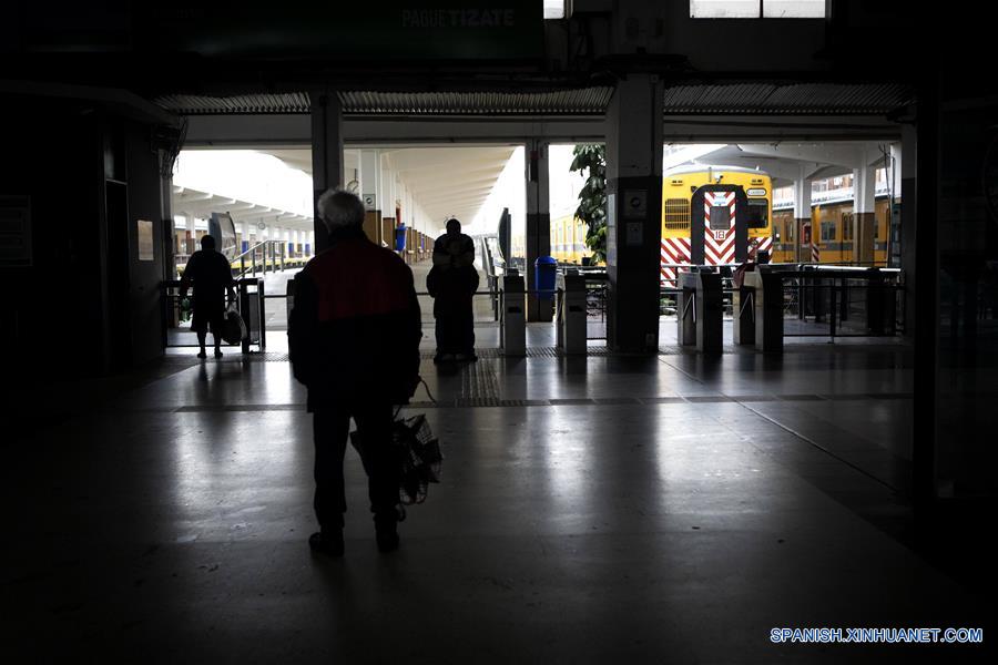 Personas permanecen dentro de la estación de trenes "Federico Lacroze" en espera del reinicio del servicio durante el masivo corte de energía, en Buenos Aires, capital de Argentina, el 16 de junio de 2019. Un masivo corte de energía dejó sin luz a toda Argentina desde alrededor de las 07:00 hora local (10:00 GMT) del domingo, informaron empresas encargadas del abastecimiento y usuarios de todo el país. (Xinhua/Martín Zabala)