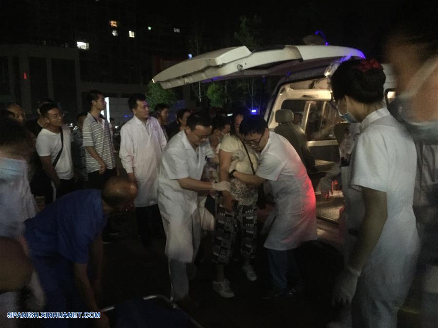 SICHUAN, 18 junio, 2019 (Xinhua) -- Empleados médicos ayudan a personas heridas en un hospital local en el distrito de Changning, en la ciudad de Yibin, en la provincia de Sichuan, en el suroeste de China, el 18 de junio de 2019. Un sismo de una magnitud 6,0 en la escala de Richter sacudió a las 22:55 del lunes, hora de Beijing, el distrito de Changning de la ciudad de Yibin en la provincia de Sichuan, suroeste de China, dijo el Centro de Redes Sismológicas de China (CENC, por sus siglas en inglés). (Xinhua/Wan Min)