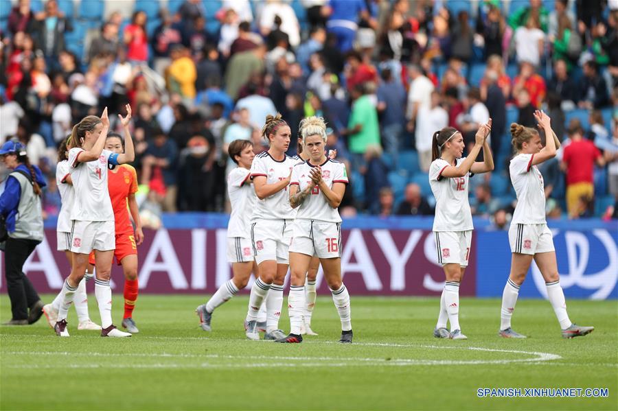 LE HAVRE, 18 junio, 2019 (Xinhua) -- Imagen del 17 de junio de 2019 de las jugadoras de Espa?a agradeciendo a los espectadores al término del partido del Grupo B de la Copa Mundial Femenina de Fútbol de la FIFA Francia 2019, ante China, en Le Havre, Francia. (Xinhua/Zheng Huansong)