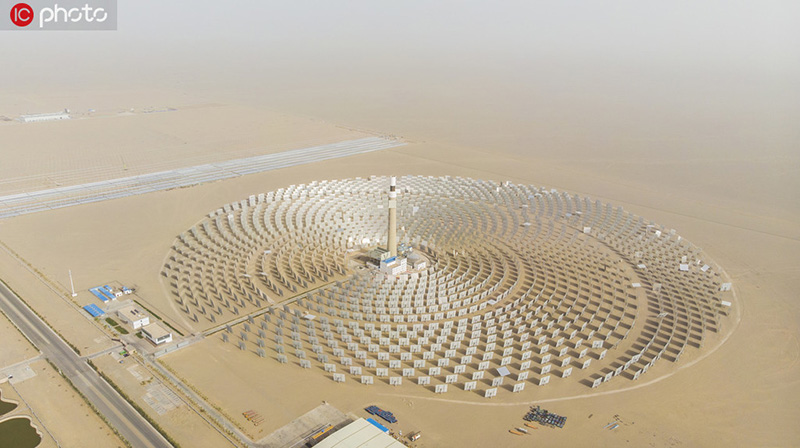 Vista aérea de la central termosolar de sal fundida de 100 megavatios, ubicada en Dunhuang, provincia de Gansu, 25 de diciembre del 2018. [Foto: IC]