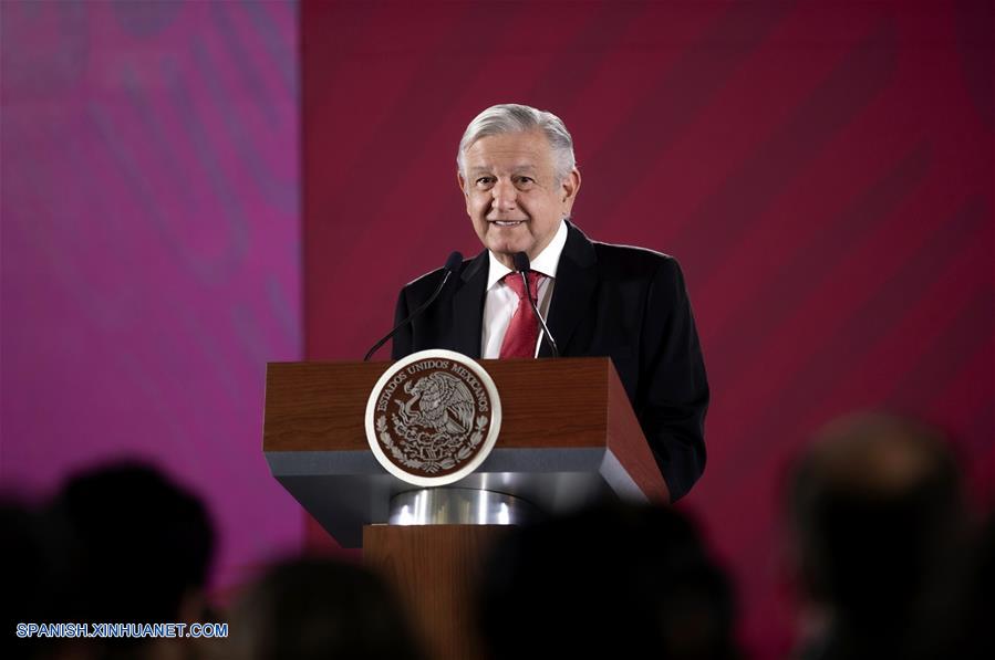 El presidente de México, Andrés Manuel López Obrador, participa durante una conferencia de prensa matutina en Palacio Nacional, en la Ciudad de México, capital de México, el 25 de junio de 2019. El presidente de México, Andrés Manuel López Obrador, ratificó el martes que la recién creada Guardia Nacional tiene la instrucción de respetar los derechos humanos de los inmigrantes. (Xinhua/Str)