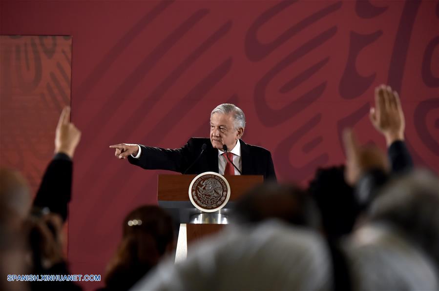 El presidente de México, Andrés Manuel López Obrador, participa durante una conferencia de prensa matutina en Palacio Nacional, en la Ciudad de México, capital de México, el 25 de junio de 2019. El presidente de México, Andrés Manuel López Obrador, ratificó el martes que la recién creada Guardia Nacional tiene la instrucción de respetar los derechos humanos de los inmigrantes. (Xinhua/Str)