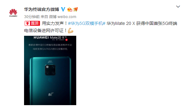 Captura de pantalla de la cuenta oficial de Weibo de Huawei, el 25 de junio de 2019. [Foto / weibo.com]