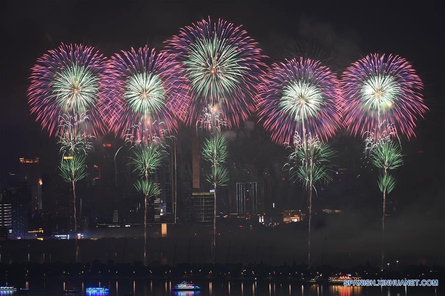 HUNAN, 26 junio, 2019 (Xinhua) -- Fuegos artificiales estallan para anunciar la próxima Exposición Económica y Comercial China-Africa, en Changsha, capital de la provincia de Hunan, en el centro de China, el 26 de junio de 2019. La próxima Exposición Económica y Comercial China-Africa se llevará a cabo del 27 al 29 de junio. (Xinhua/Xue Yuge)