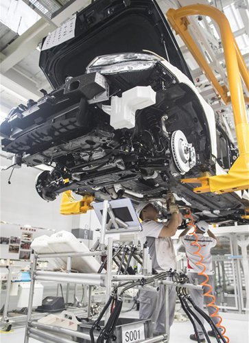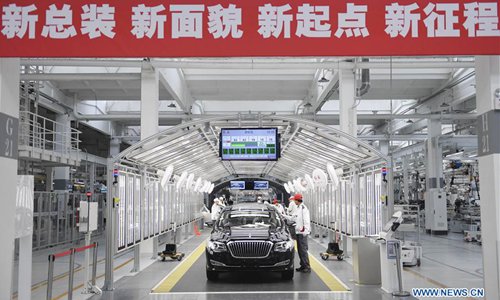 Los miembros del personal trabajan en un vehículo Hongqi en una planta del Primer Taller de Automóviles (FAW, por sus siglas en inglés) en Changchun, provincia de Jilin, el 13 de junio del 2019. El Grupo FAW, principal fabricante de automóviles de China, ha asumido una serie de “reformas quirúrgicas” relacionadas con sus recursos humanos y la reconstrucción de la marca. (Foto: Xinhua)