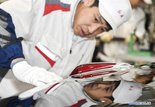 Un trabajador instala una parte de la decoración de un vehículo Hongqi en una planta del Primer Taller de Automóviles (FAW, por sus siglas en inglés) en Changchun, provincia de Jilin, el 13 de junio del 2019. El Grupo FAW, principal fabricante de automóviles de China, ha asumido una serie de “reformas quirúrgicas” relacionadas con sus recursos humanos y la reconstrucción de la marca. (Foto: Xinhua)