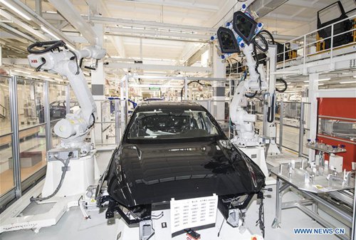 Los robots industriales instalan ventanas en un vehículo Hongqi en una planta del Primer Taller de Automóviles (FAW, por sus siglas en inglés) en Changchun, provincia de Jilin, el 13 de junio del 2019. El Grupo FAW, principal fabricante de automóviles de China, ha asumido una serie de “reformas quirúrgicas” relacionadas con sus recursos humanos y la reconstrucción de la marca. (Foto: Xinhua)