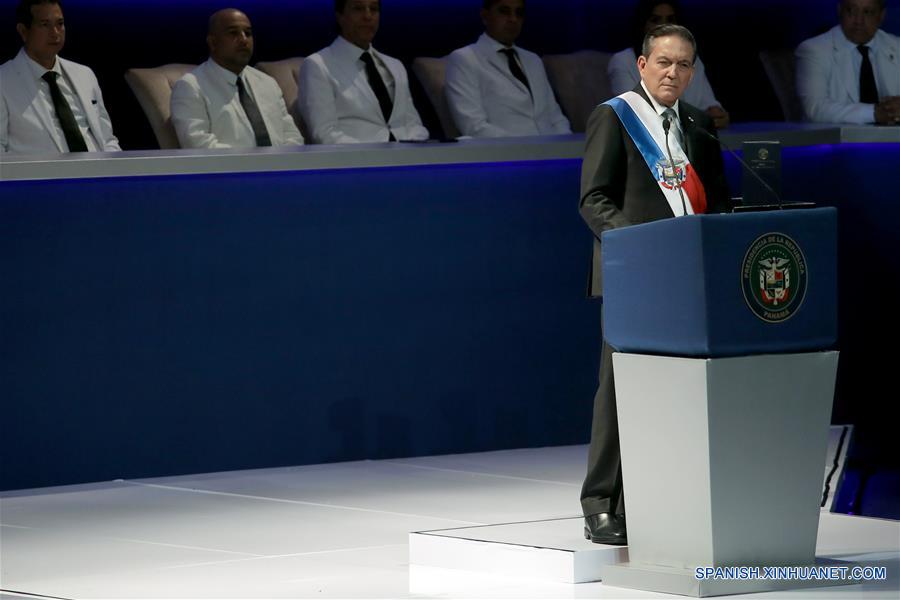 El presidente paname?o, Laurentino Cortizo, pronuncia un discurso durante su ceremonia de juramentación, en el auditorio del Centro de Convenciones Atlapa, en la Ciudad de Panamá, capital de Panamá, el 1 de julio de 2019. Laurentino Cortizo de 66 a?os y del Partido Revolucionario Democrático (PRD), instó el lunes durante su toma de posesión como presidente de Panamá para los próximos cinco a?os a superar la desigualdad y unir fuerzas en el país. (Xinhua/Mauricio Valenzuela)