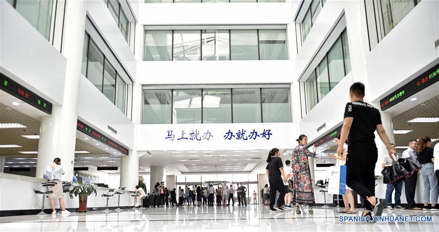 DALIAN, 1 julio, 2019 (Xinhua) -- Imagen del 24 de junio de 2019 de la Sala de Asuntos Gubernamentales de la Zona Piloto de Libre Comercio del área de Dalian, en Dalian, en la provincia de Liaoning, en el noreste de China. El Foro Davos de Verano 2019 se llevará a cabo del 1 al 3 de julio en la ciudad costera de Dalian, en el noreste de China. Creado por el Foro Económico Mundial (FEM) en 2007, el Davos de Verano se celebra cada a?o en China. Alterna la sede entre las ciudades costeras de Dalian y Tianjin. El Foro Davos de Verano, ayudó a Dalian a reformar el paisaje de la economía regional y fortalecer el comercio del puerto con otros mercados. Dalian se ha convertido en una ciudad internacional y una muestra de la reforma y apertura de China. (Xinhua/Yao Jianfeng)