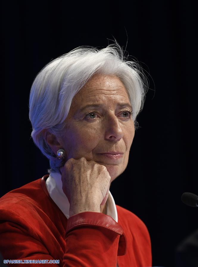 Imagen de archivo del 11 de abril de 2019 de Christine Lagarde, directora gerente del Fondo Monetario Internacional (FMI), participando en una conferencia de prensa en las reuniones de Primavera del FMI y el Banco Mundial en Washington, D.C., Estados Unidos. La directora gerente del Fondo Monetario Internacional (FMI), Christine Lagarde, dijo el martes que se siente honrada por haber sido nominada para presidir el Banco Central Europeo (BCE) y que decidió alejarse temporalmente de la dirección del FMI durante el periodo de nominación. (Xinhua/Liu Jie)