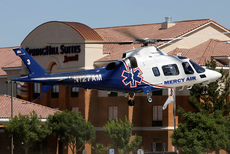 Un helicóptero médico despega cerca del Hospital Regional Ridgecrest, después del poderoso terremoto que azotó el sur de California, en Ridgecrest, California, Estados Unidos, el 4 de julio del 2019. [Foto: Agencias]