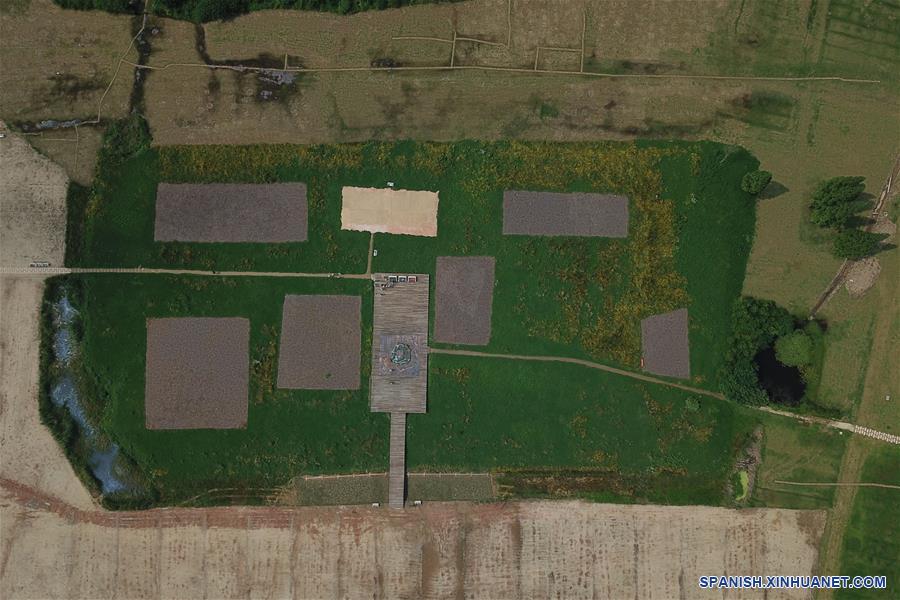 Imagen del 23 de junio de 2019 de una vista aérea del sitio de reliquias en Hangzhou, capital de la provincia de Zhejiang, en el este de China. Las ruinas arqueológicas de la ciudad de Liangzhu en China fueron puestas el sábado en la Lista de Patrimonio Mundial de la UNESCO como un sitio cultural con lo que el número de sus lugares de patrimonio en dicho catálogo llega a 55. (Xinhua/Huang Zongzhi)