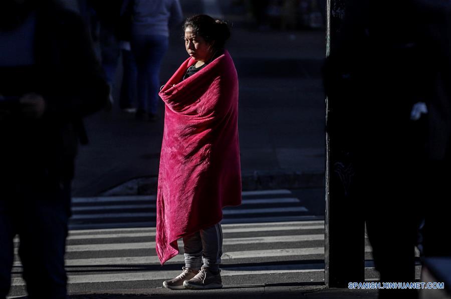 Una mujer reacciona durante una ma?ana fría en Sao Paulo, Brasil, el 8 de julio de 2019. De acuerdo con el Instituto Nacional de Meteorología (INMET, por sus siglas en inglés), en los días recientes Sao Paulo ha alcanzado las temperaturas más bajas para julio en seis a?os. De acuerdo con información de la prensa local, cinco personas sin hogar han sido encontradas muertas en los últimos días y se sospecha que la causa de las muertes se relaciona con las bajas temperaturas. (Xinhua/Rahel Patrasso)